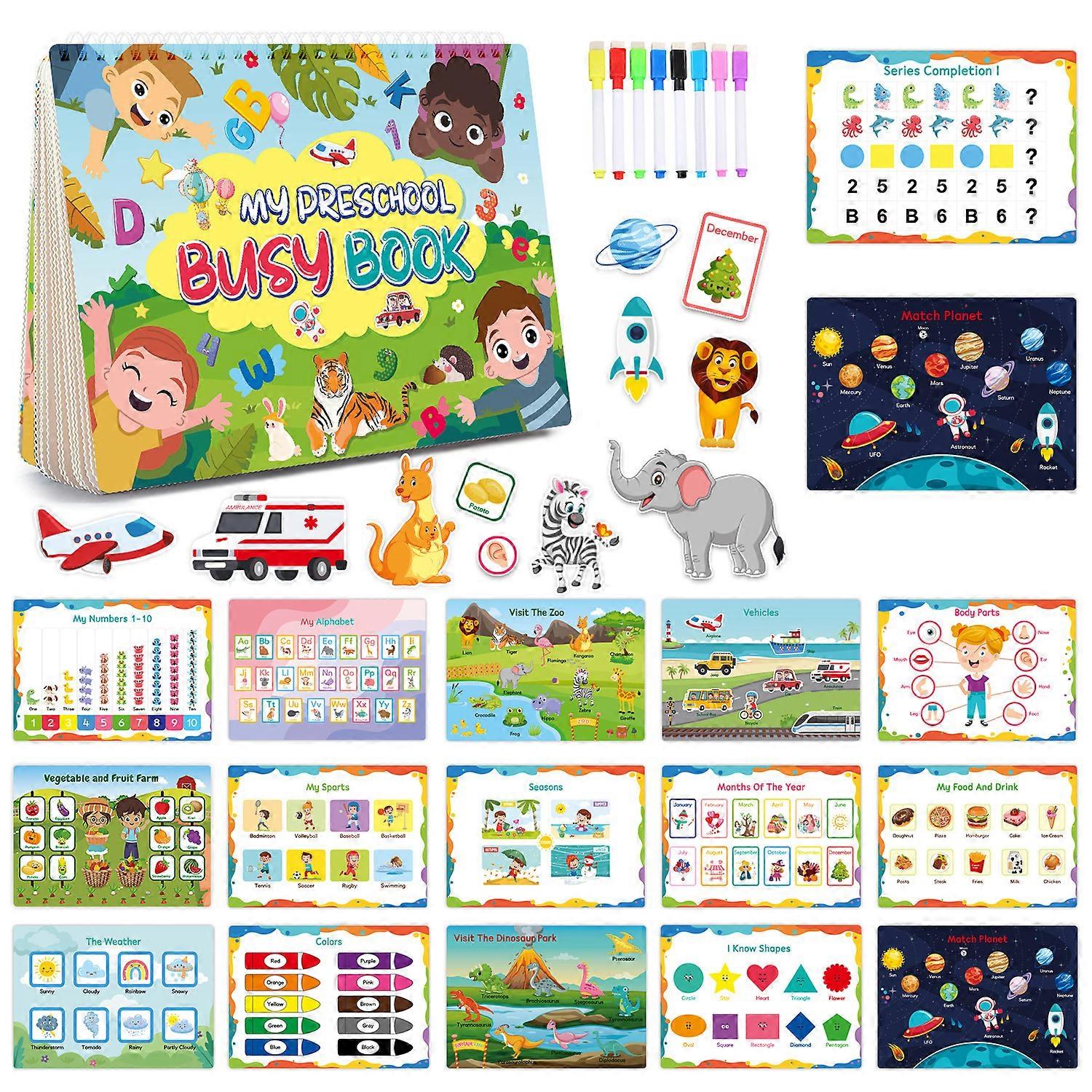 Toddler Busy Book, Autism Toys for Kids, Preschool Learning Activity Binder, 16 Themes with Colorful Pages, Educational Book