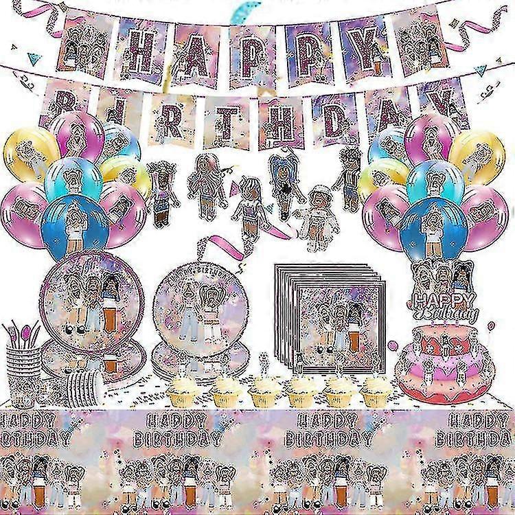 Block Party Paper Cups Paper Plates Knife, Fork And Spoon Tablecloth Banner Birthday Decoration