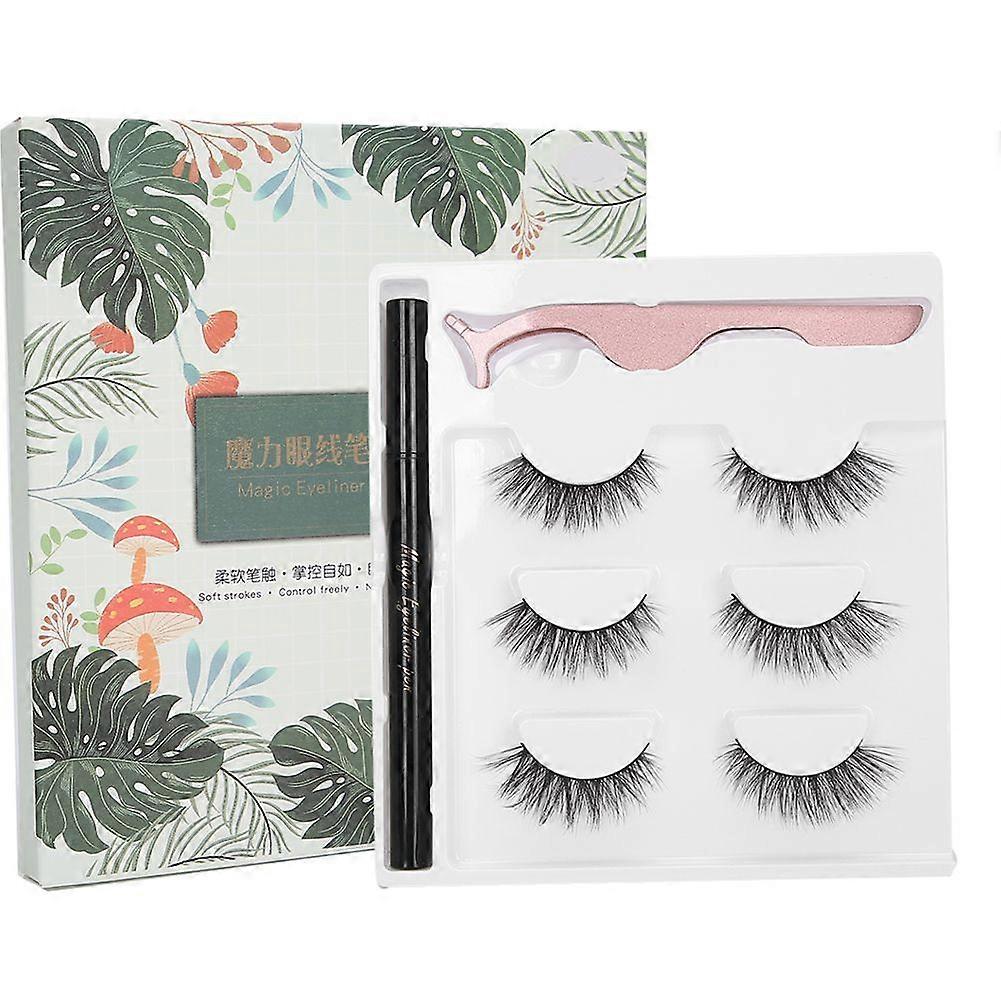 SelfAdhesive Eyeliner Water Liquid Eyeliner False Eyelashes Tweezers Makeup Tool Set(E25 Green Box )