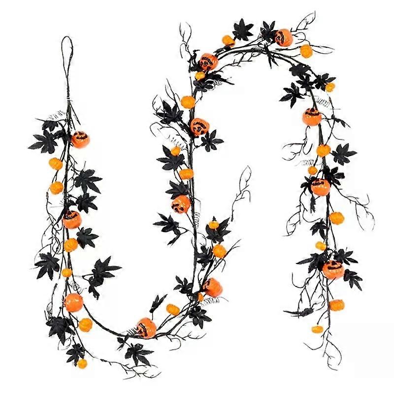 Artificial Vine with Pumpkins, Halloween Hanging Decorations, 5.9ft Black Maple Leaf Vine Indoor Outdoor Decor