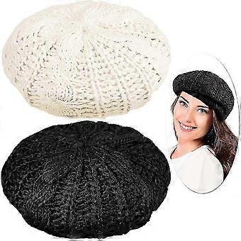 Soft Lightweight Crochet Solid Color Beret for Women, One Size Casual Beanie Hat for Ladies