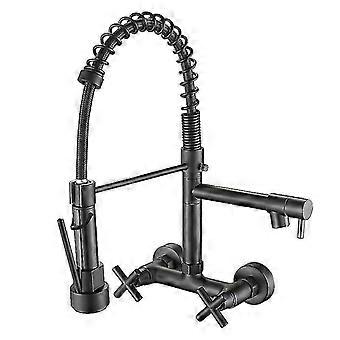 كروم / أسود المطبخ صنبور مزدوج مقابض الماء الساخن البارد خلاط المطبخ الحنفية الحائط المزدوج قطب صنبور الربيع سحب الحنفيات
