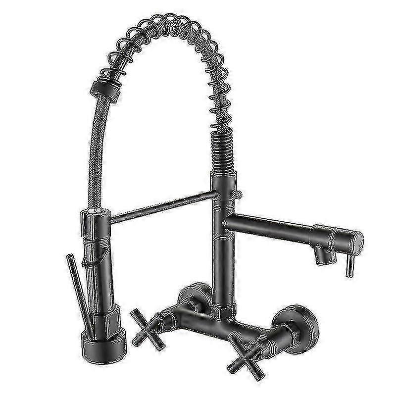 Chrome/black Kitchen Faucet Dual Handles Hot Cold Water Kitchen Mixer Tap Wall Mounted Dual Swivel Spout Spring Pull Down Faucets