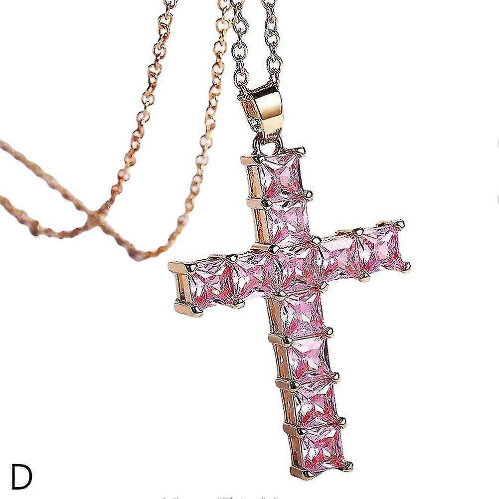 Crystal Cross Pendant Necklace Chain Alloy Zircon Neutral Style