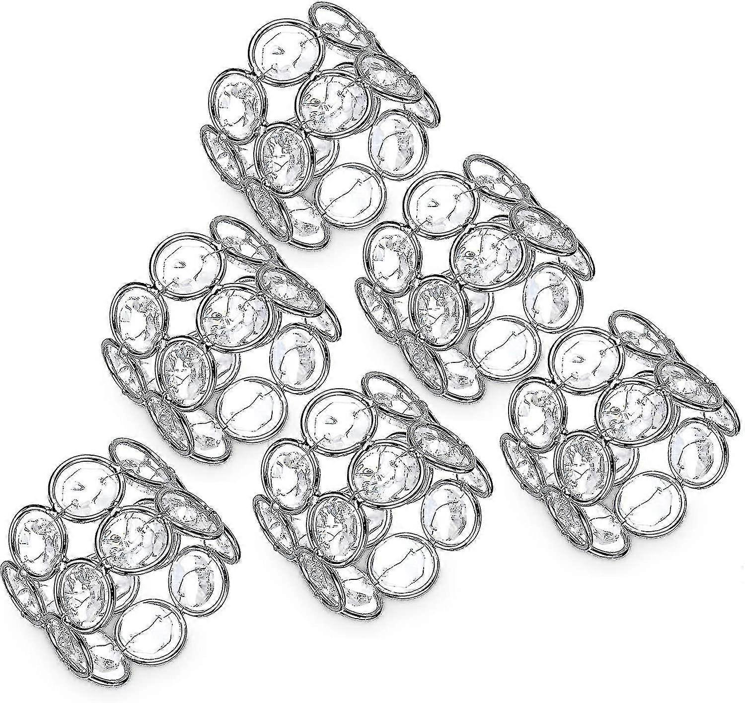 Crystal Napkin Rings, Beads Napkin Holder, Table Decor 6 Pack, Silver