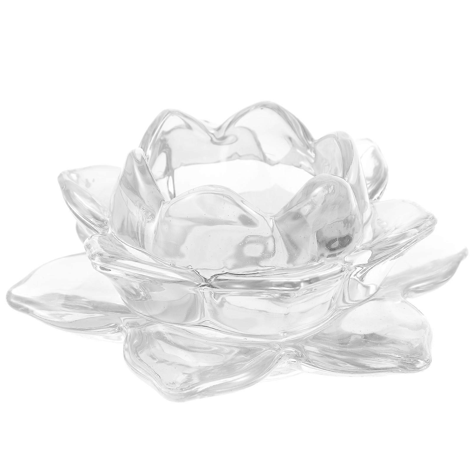 Crystal Lotus Buddhist Candle Holder Glass Base for Home Decoration, Oil Butter Lamp Stand, Aromatherapy Container, Elegant Candlestick for Votive