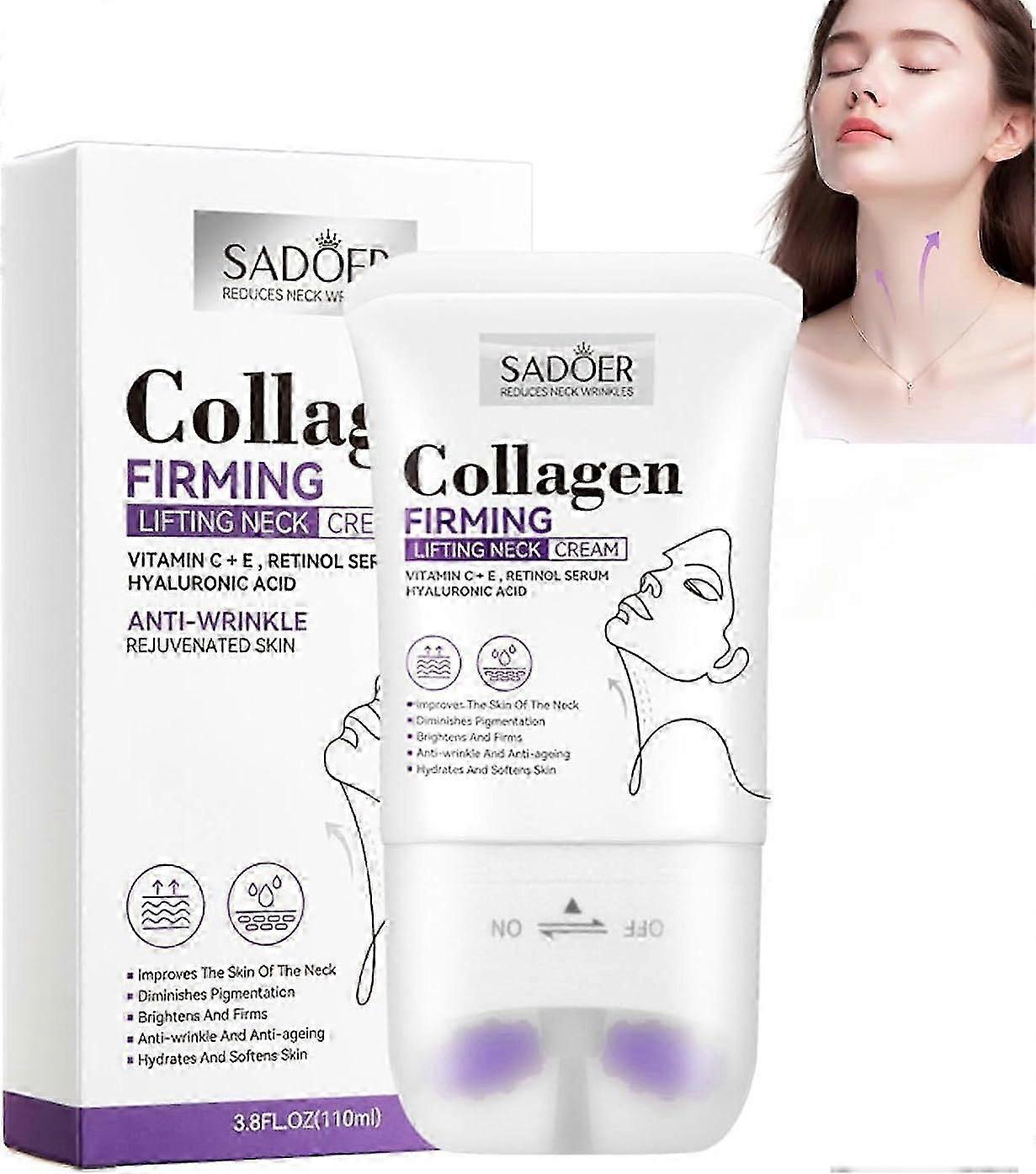 Face and neck collagen cream: provides moisture to the skin, enhances skin vitality, improves skin, provides nutrients to the skin, enhances skin care and provides a youthful appearance.Special design: The unique roller design helps massage the neck, helps absorb nutrients and improves the skin, making the skin more comfortable and easy to absorb.Suitable for all skin types: Whether you have oily, dry or combination skin, you can rely on our creams to nourish and moisturize your skin. Keep skin moisturized throughout the day, away from dryness and tightness.Easy to carry: The Collagen cream for Face and neck is designed to be small, portable and easy to carry, taking care of neck skin anytime, anywhere.Collagen Firming Lifting Neck Cream: Collagen neck firming cream to help lift & firm the skin of your neck, face or body, providing a youthful appearance