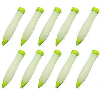 Perfect for piping royal icing, cream, and piping into your paste flowers, cakes, cups, and other decorations on a daily basis.This makes icing goodies so easy to decorate, just like writing Simply fill the pen with frosting, push the plunger, and write on your cake.With just one push, the frosting pops out.You get perfect lines time This flexible silicone non-stick mold maintains a steady hand and an even of frosting.It's perfect for amateurs looking to perfect their decorating skills, or for professionals who want to maintain a application.Colour:greenMaterial:Silica Size:13.5 x 2.7cmPackage Contents:10 x Baking Only the above package content, other products are not included.Note: Light and different displays may the color of the item in the a little different from the real thing. The measurement allowed error is +/- 1-3cm.