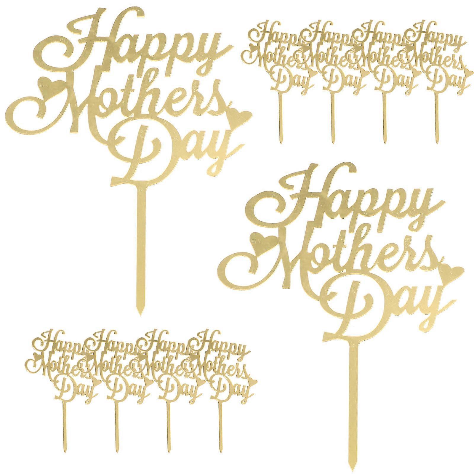 Cake Decor Toppers Acrylic Cupcake Topper Mothers Day Party Cake Decoration Golden 10pcs