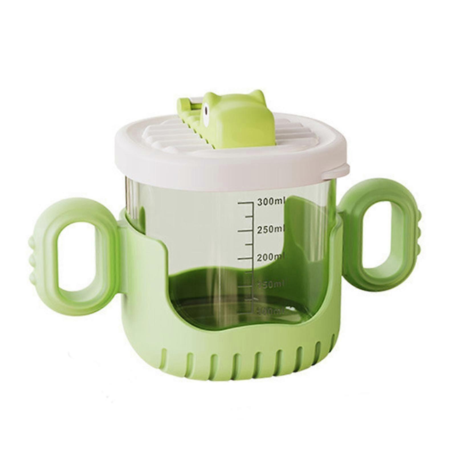 Baby Sippy Cup 300ml Baby Straw Cup with Silicone Straw and Double Handle Baby Training Cup with Non Slip Grooved Backing Cute Crocodile Free Flow Str