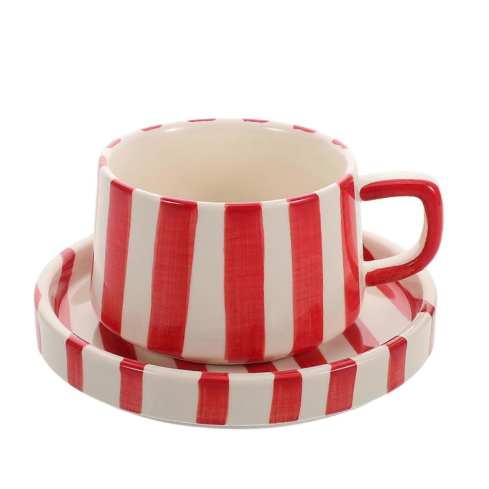 Creative Ceramic Cup Striped Coffee Mug For Tea Household Red 14.50X9.20X6.40CM Ceramic 1 Set