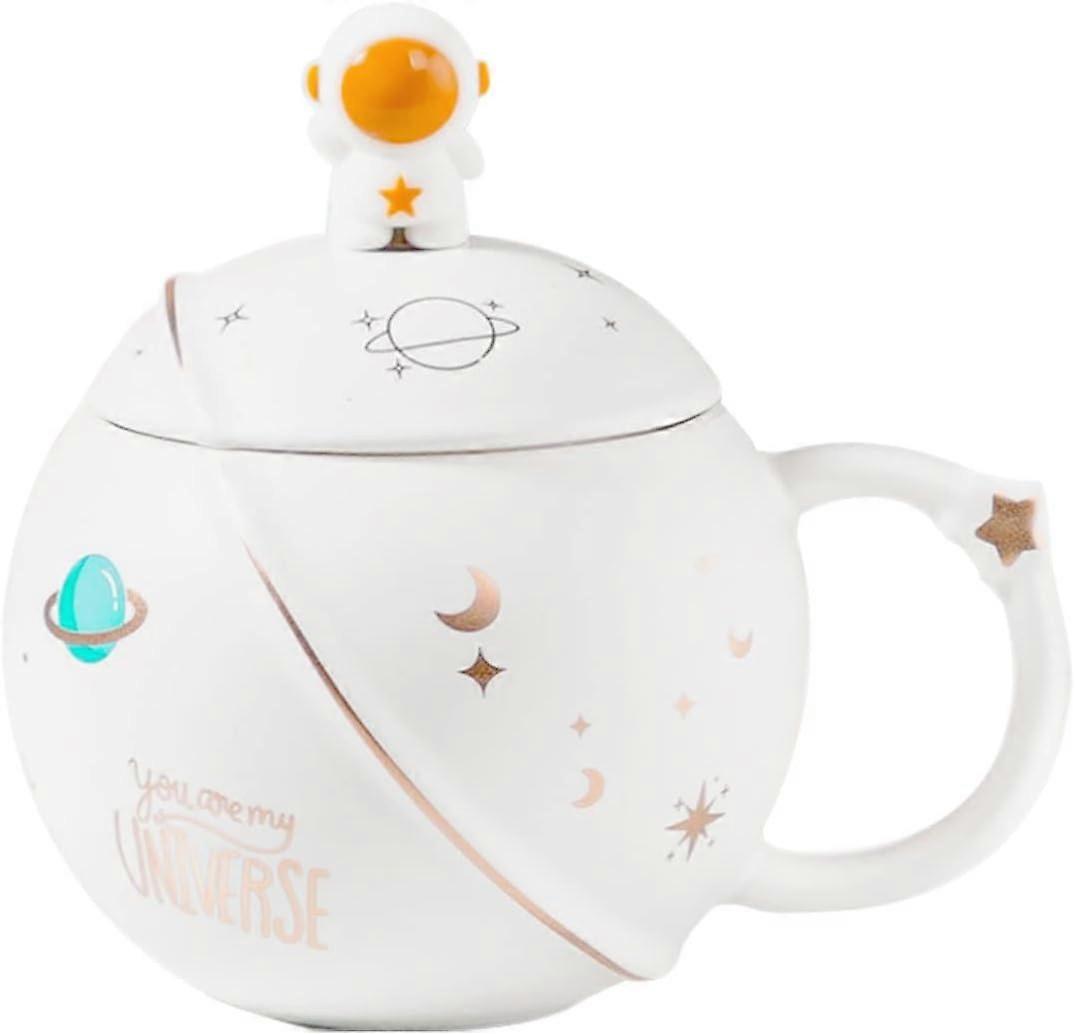 Cute Astronaut Mug with Lid and Spoon, Kawaii Cup Novelty Mug for Coffee, Tea and Milk, Mug Gift