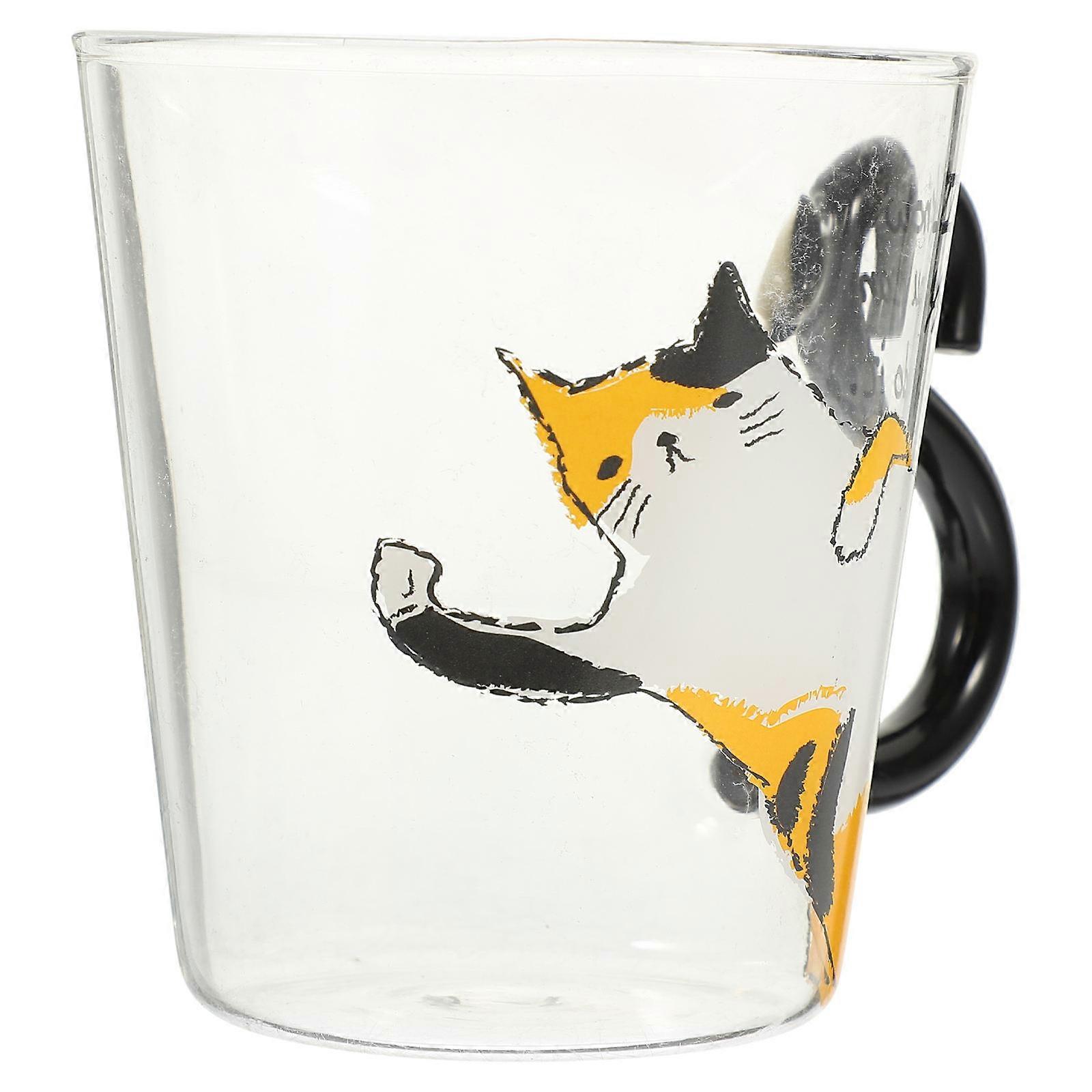 Cute Cat Glass Mug with Handle for Coffee, Tea, Milk, and Juice – Smooth Edges, Home and Office Use
