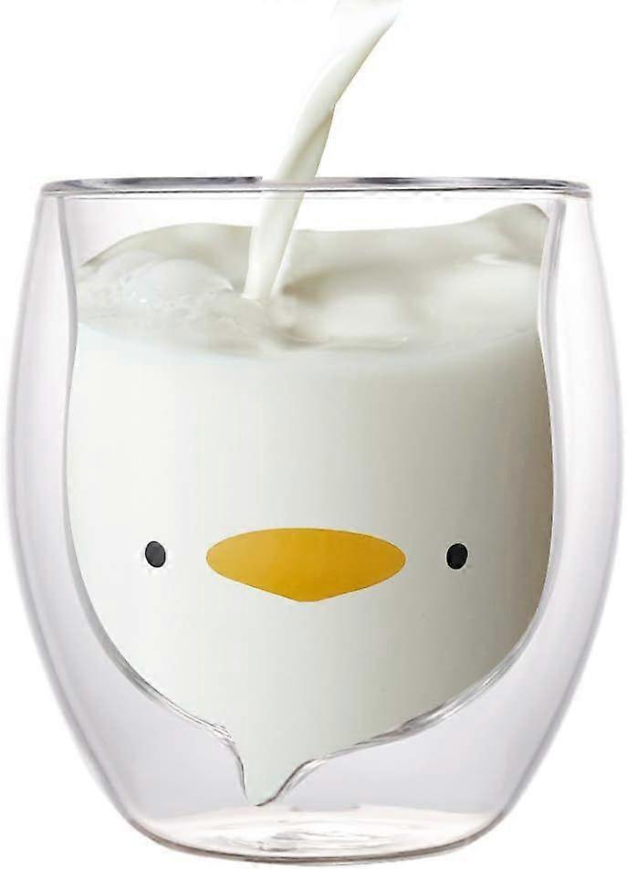 Double Wall Glass Mug, Speyang Clear Glass Coffee Mug, Borosilicate Glass Mug, Double Wall Coffee Mug250ML (Bear, Duck) (Duck)