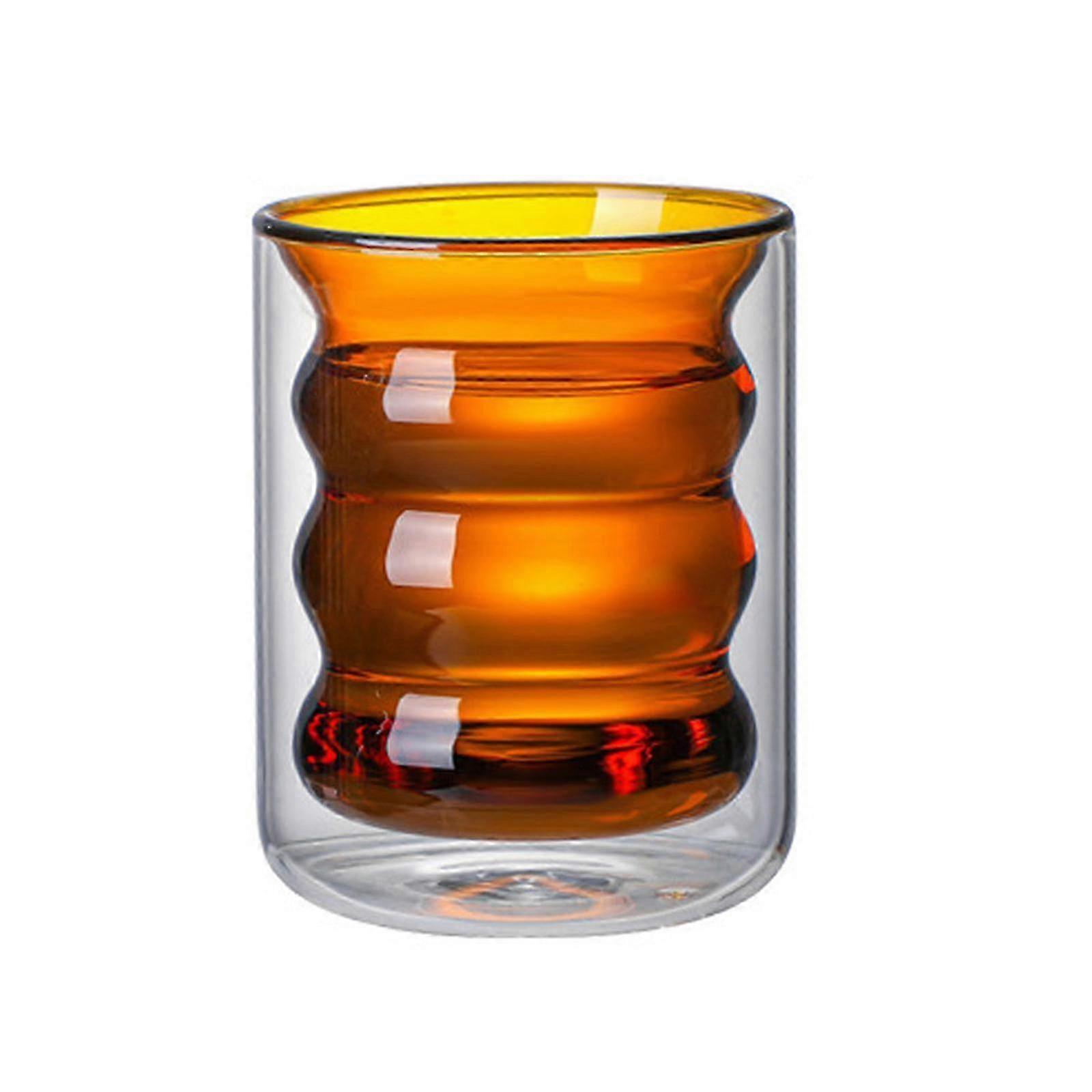 220ml Double-Layer Glass Mug, Heat-Resistant Spiral Design for Office or Home Use