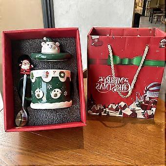 Christmas Cute Bear Ceramic Mug, Kawaii Animal Tea Cup, Party Bear Coffee Mug, Women's Pink Cup, Funny Mug with Lid and Spoon, Christmas Gift, 500ml
