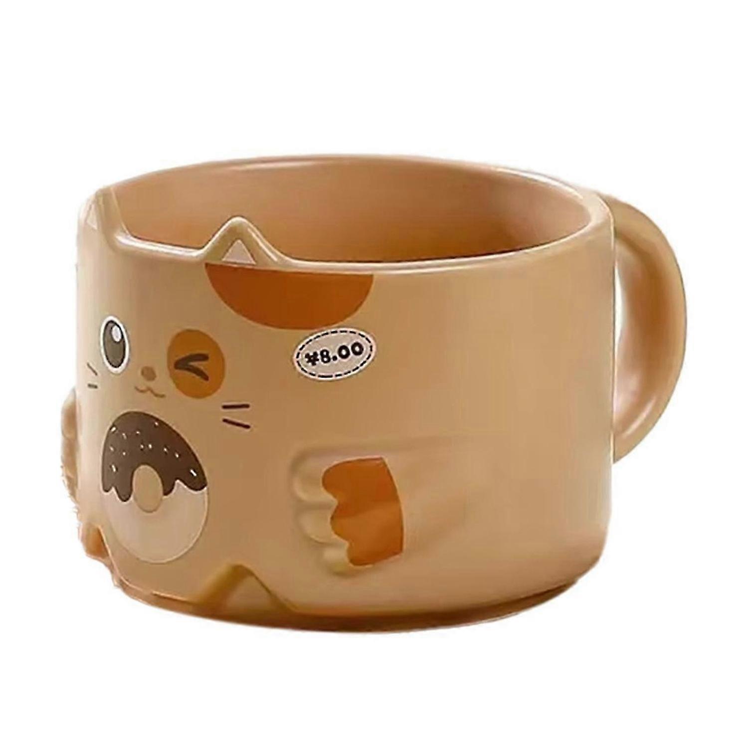 Cat Ceramic Mug - Stacked Water Cup with Cat'S Ear Design,Brown