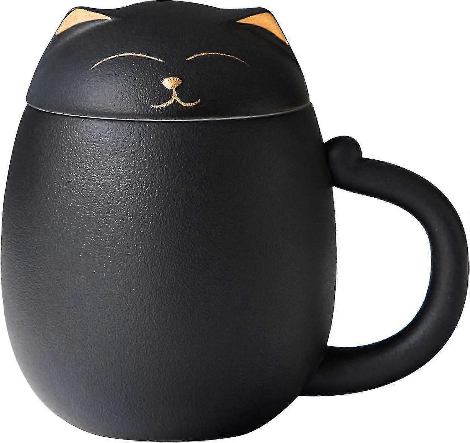 Ceramic Tea Mug with Infuser and Lid - Cat Design Handmade Porcelain Teacup for Home Office, 12oz