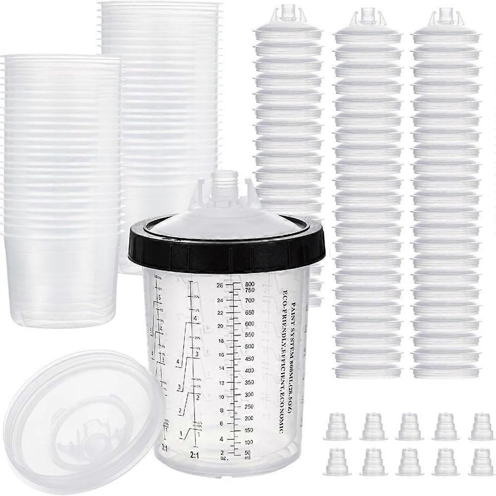Paint Cup for HVLP and LVLP , 28 Ounce (800ml) Kit with 50 Cups and Lids System, 1 Hard Cup Retainer Ring and 20 Plugs