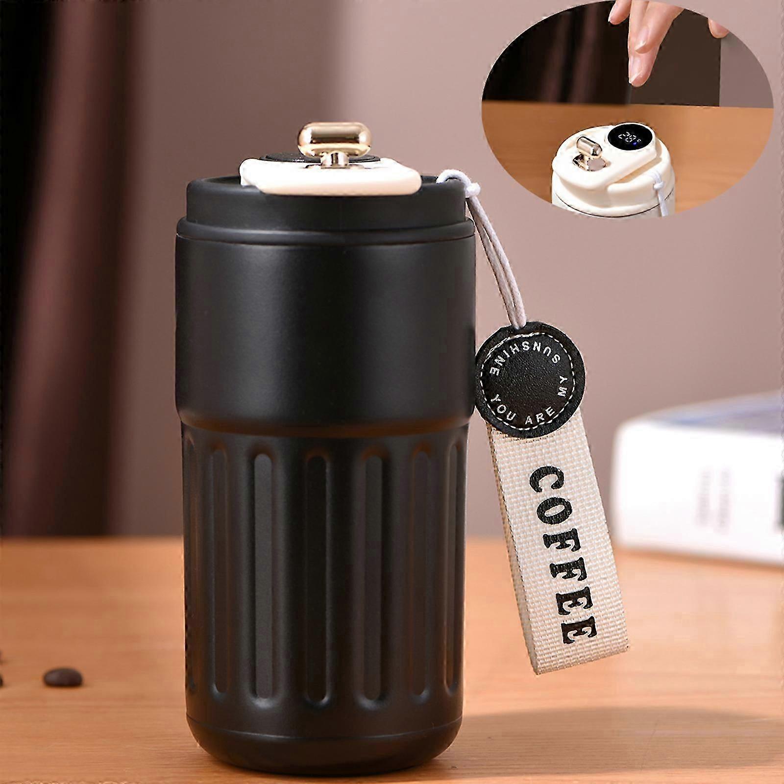 Thermal Coffee Mug For Hot & Cold Drinks, 450Ml Coffee Cup Travel Mug With Digital Temperature Display, Leakproof Stainless Mug With Portable Handle