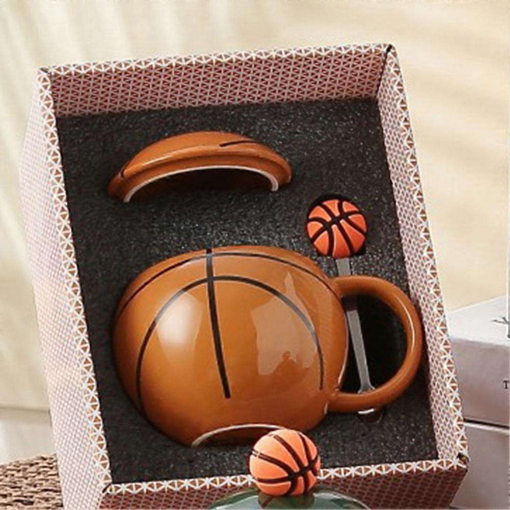 Basketball Coffee Mug with Lid and Spoon, Ceramic Sports Cup Gift Set for Father'S Day