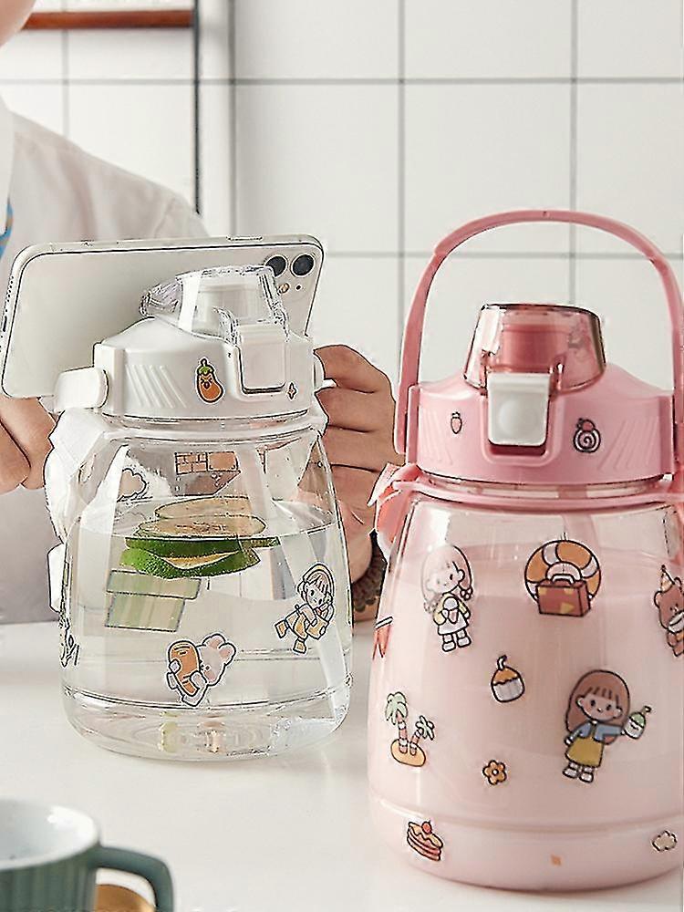 Large Capacity Water Cup/Big Kettle, Safe Unique Style Portable Sports Cups PP Durable Cute Drinking Glass with Straw, Free Stickers Included