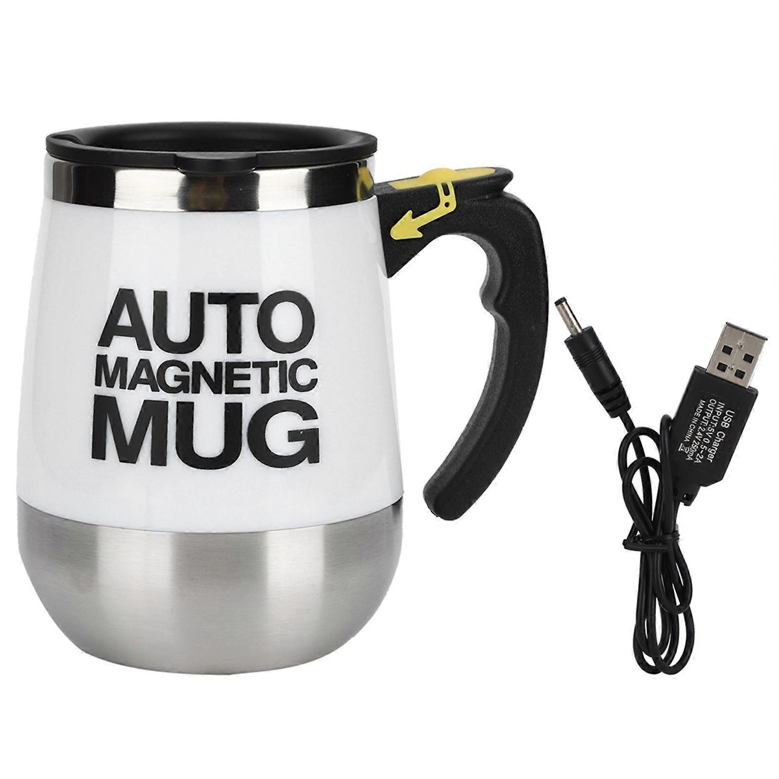 USB Charging Stainless Steel Electric Magnetic Water Cup Milk Coffee Self Stirring Mixing Mug400ml White