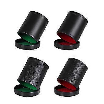 Leather Dice Cup with Lid Green Red Lining Interior Quiet in Shaking for Liars Dice Farkle Board Games, Black