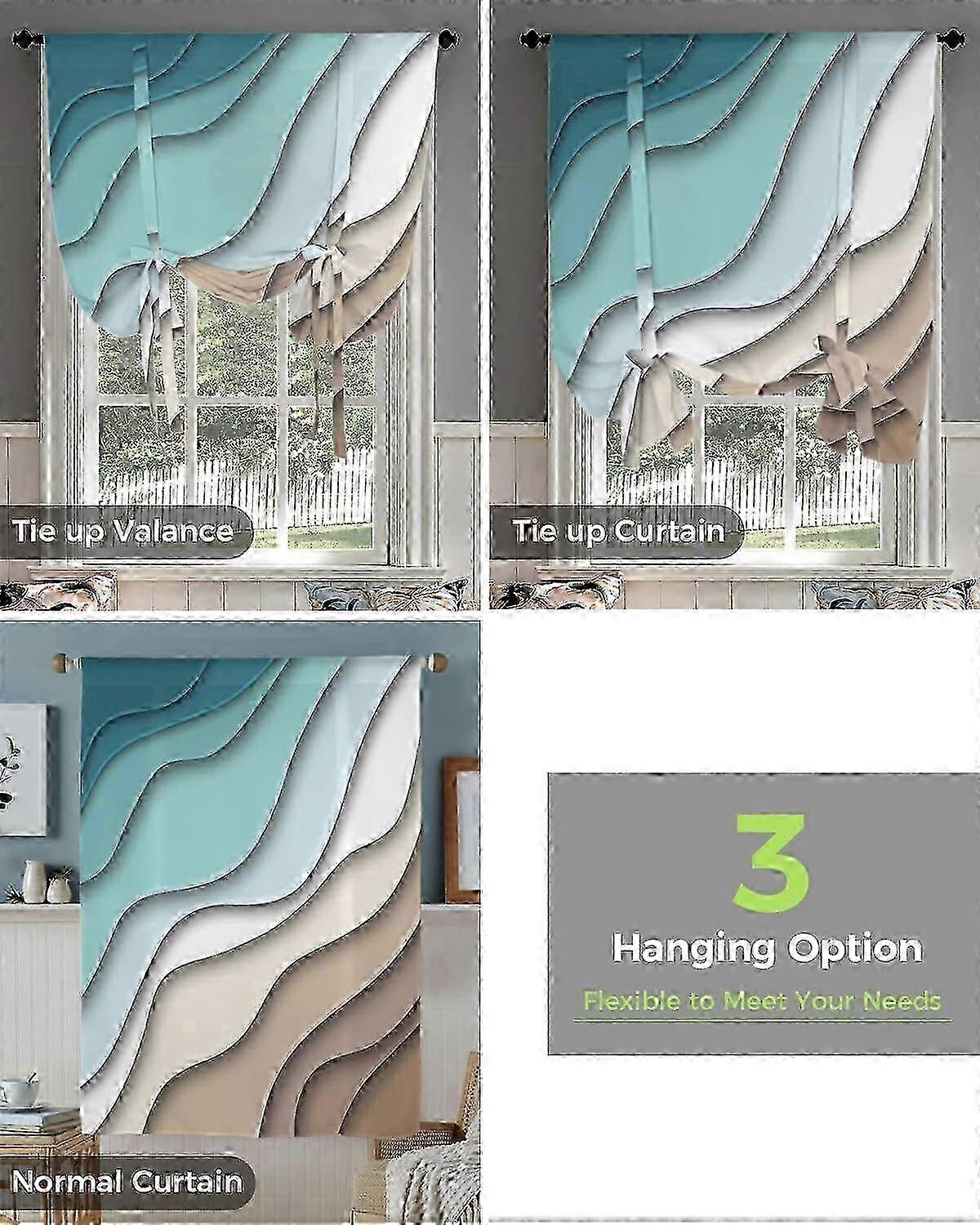 Curta Teal Blue Modern Geometric Adjustable Brown Abstract Ocean Wave for Bedroom 42' W x 63' L