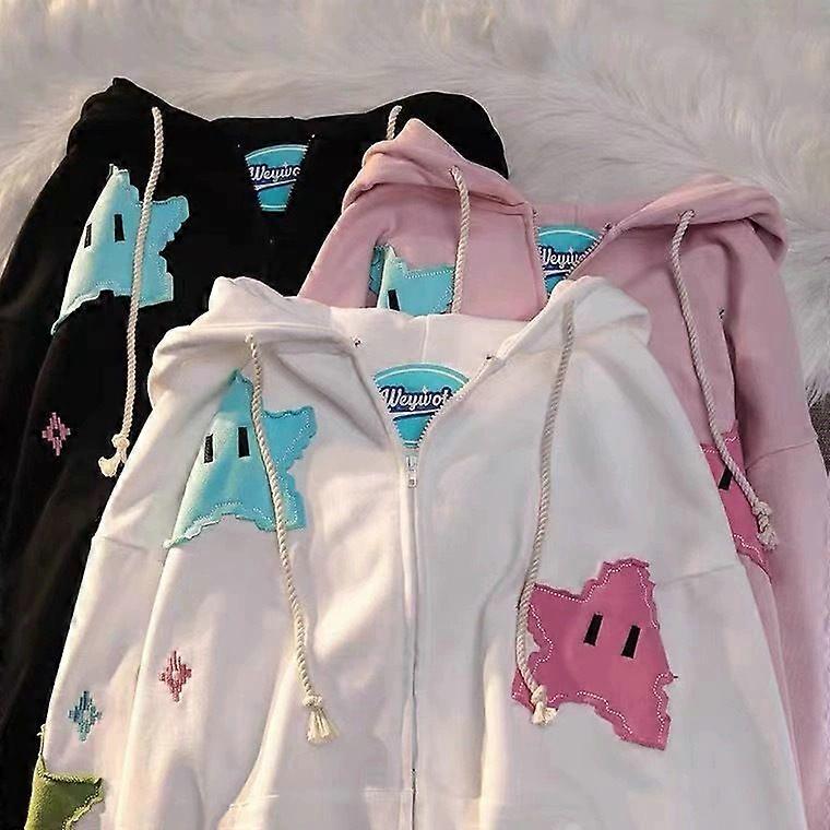Kuro Cartoon Hooded Sweatshirt Women's Pullover with Cute Patches Loose Long Sleeve Top