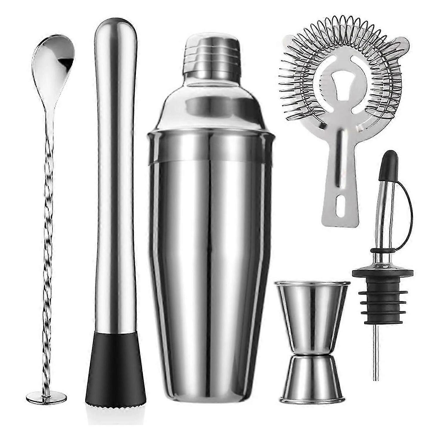 Cocktail Shaker Set,24oz Shaker Strainer Muddler Jigger Mixing Spoon Pour Spout Bartender Kit,Stainless Steel Bar Set