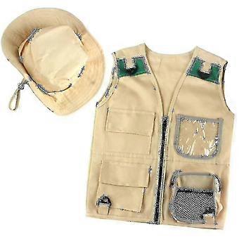 Outdoor Kit,young Kid's Khaki Vest And Hat Comfortable And Durable Explorer Costume Role Play Toy