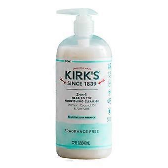 Kirk's Natural Products 3-In-1 Head to Toe Nourishing Cleanser Fragrance-Free ,Original, 32 oz