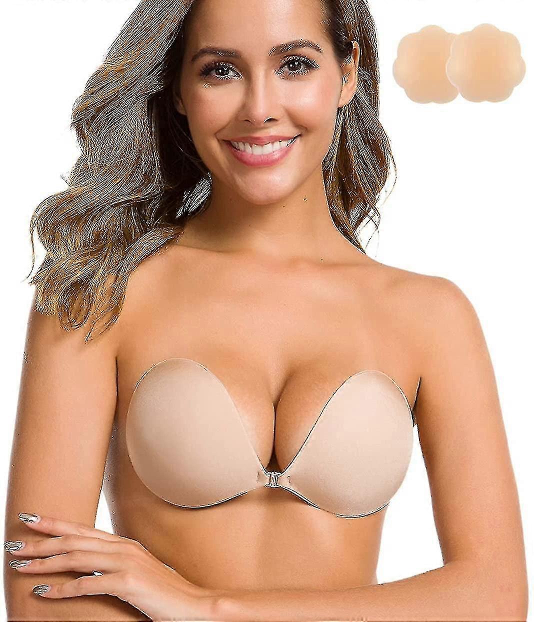 Adhesive Bra Strapless Sticky Invisible Push Up Silicone Bra For Backless Dress With Nipple Covers Nude
