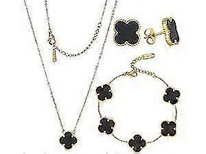 Lucky Clover Sets Necklace Pendant Earrings Bracelet for Women Girls 19k Gold Plated Charm Cute Jewelry Womens Girls Gift
