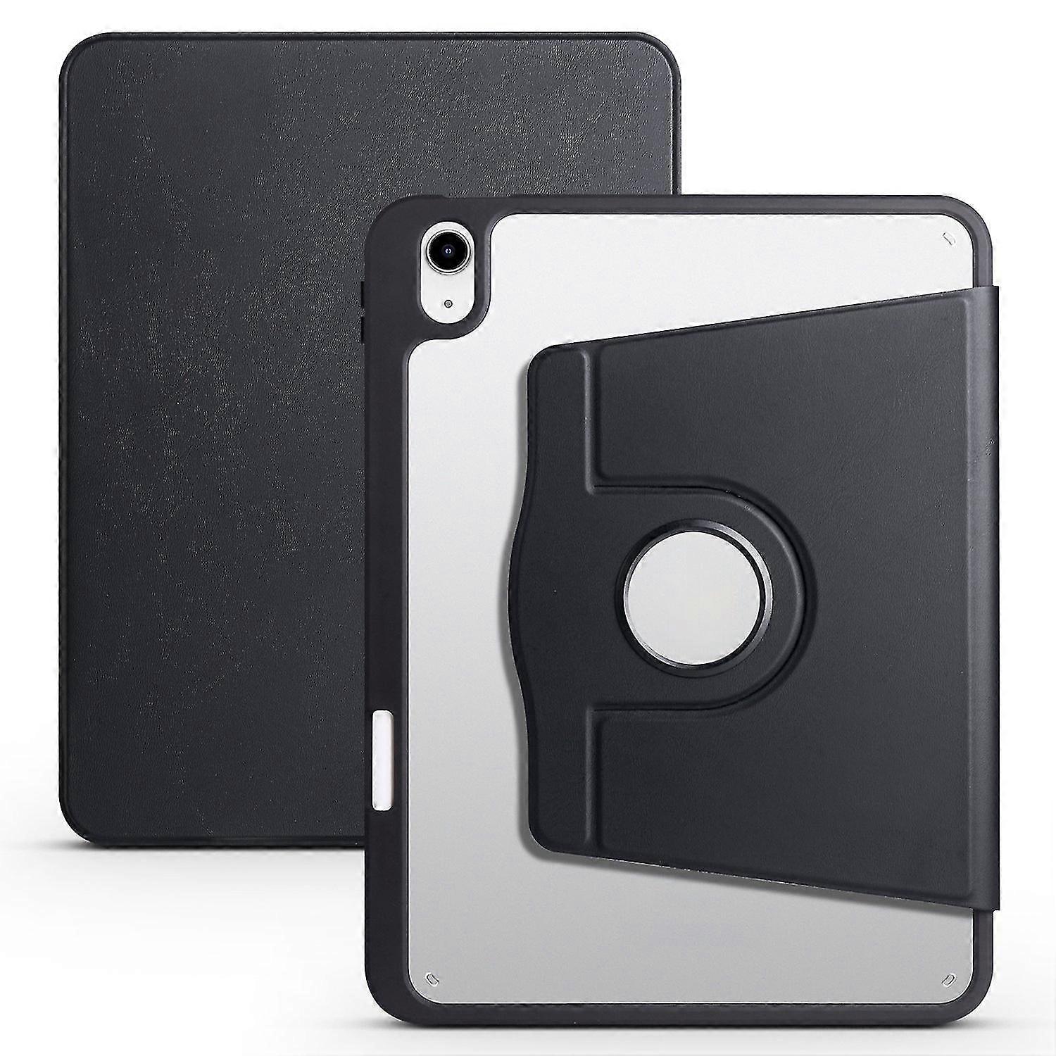For iPad Air 13 (2024) Case with Pen Holder PU Leather+Acrylic Rotating Stand Tablet Cover - Black Black