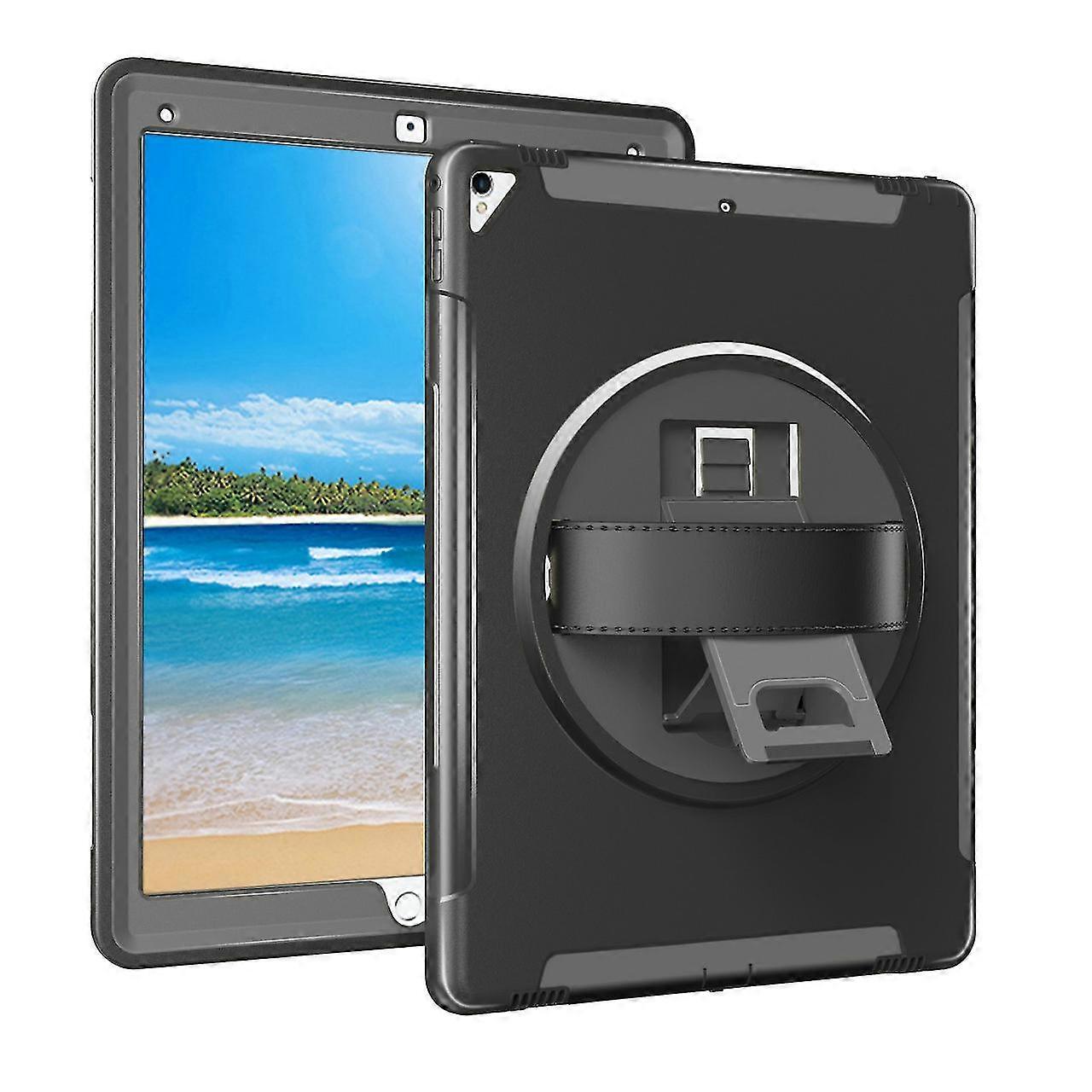 For Ipad Pro 12.9 (2017) Heavy Duty Pc Tpu Hybrid Tablet Case With Rotary Kickstand - Black