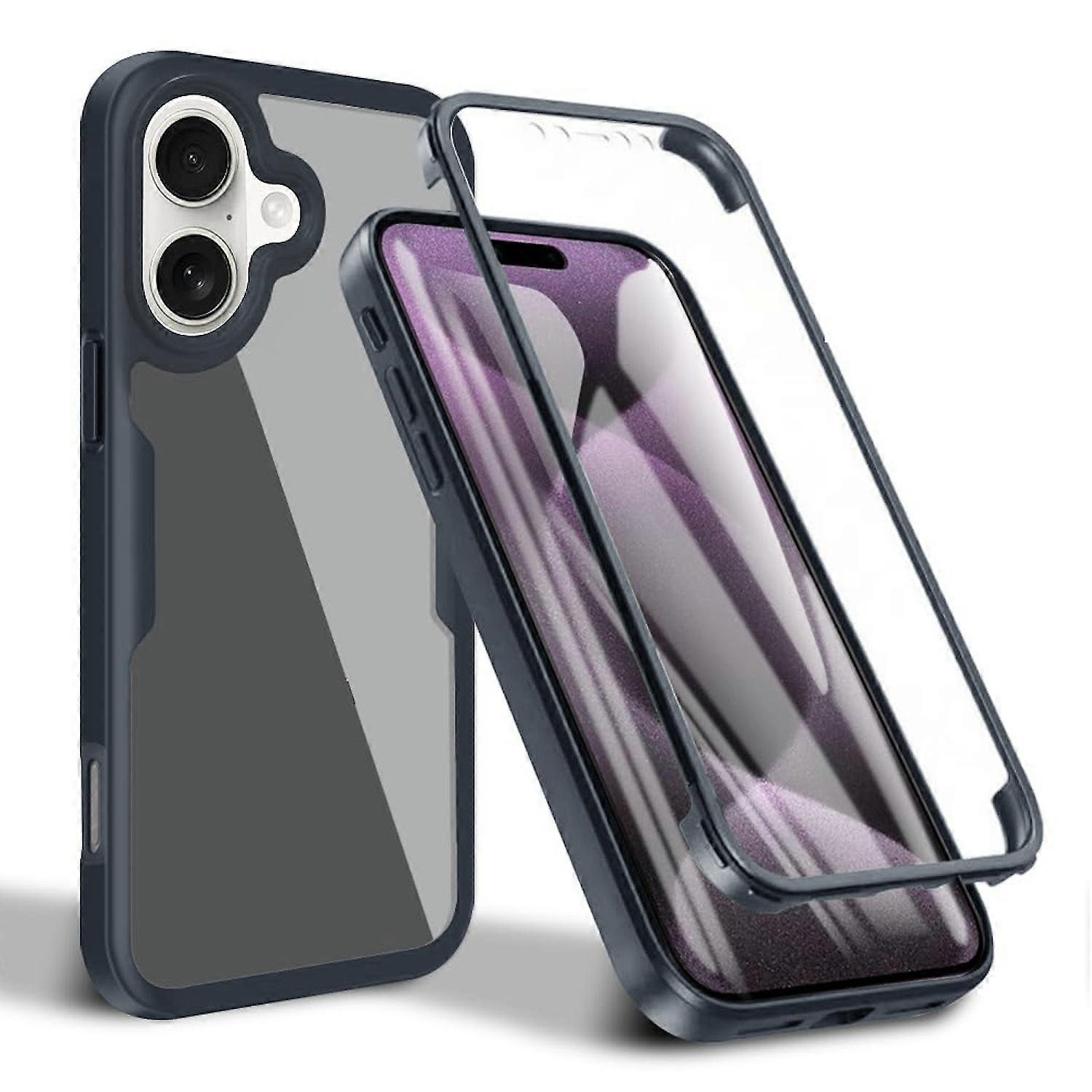 Für Apple iPhone 16 Full Body 360 Grad Hybrid Bumper Hülle Schwarz