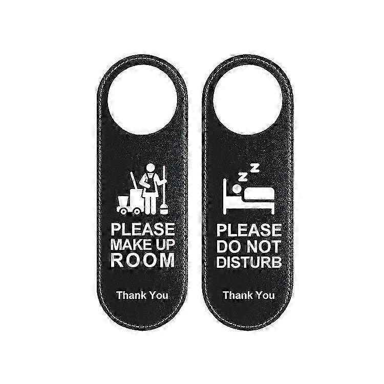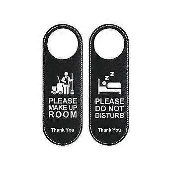 Do Not Disturb/Please Make Up Room Sign,Double-Sided Door Hanger,Eco Leather Hotel Style
