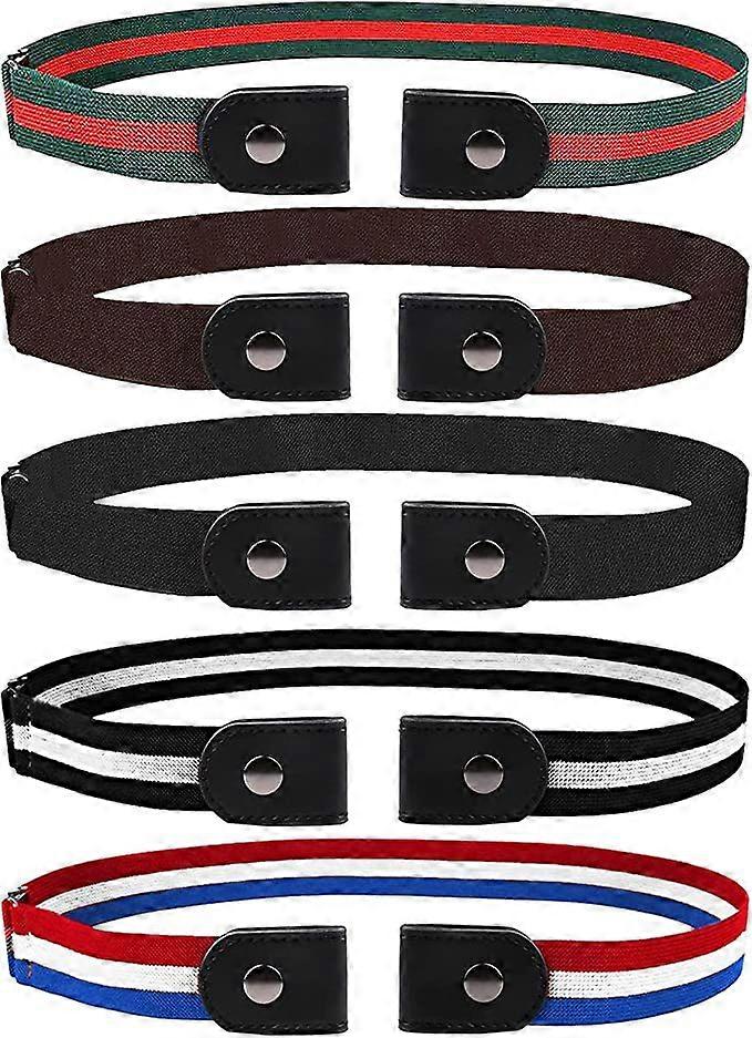 No Buckle Stretch Belt Buckle Free Adjustable Women Belt Elastic Waist Belt for Women Men Jeans PantsMutilColor5 PCS