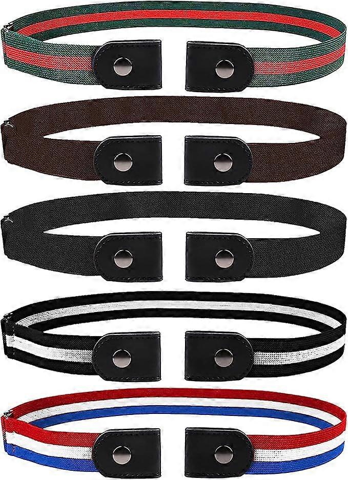 No Buckle Stretch Belt Buckle Free Adjustable Women Belt Elastic Waist Belt for Women Men Jeans PantsMutilColor5 PCS