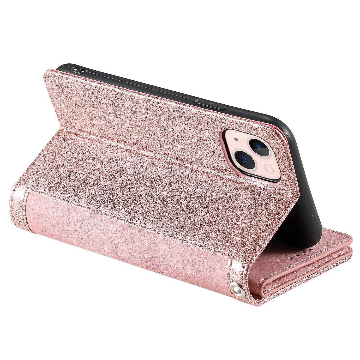 For iPhone 14 Plus Zipper Pocket Design 9 Card Slots Case Closure Stand Wallet Cover with Strap