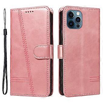 For iPhone 13 Pro Case PU Leather Phone Cover with Wallet Stand View - Rose Gold