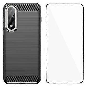 For OnePlus Ace 5 Ultra 5G / OnePlus Nord 5 5G Case with Screen Film WANLONFENG LS Series Big Lens Hole Brushed Texture TPU Phone Cover Black
