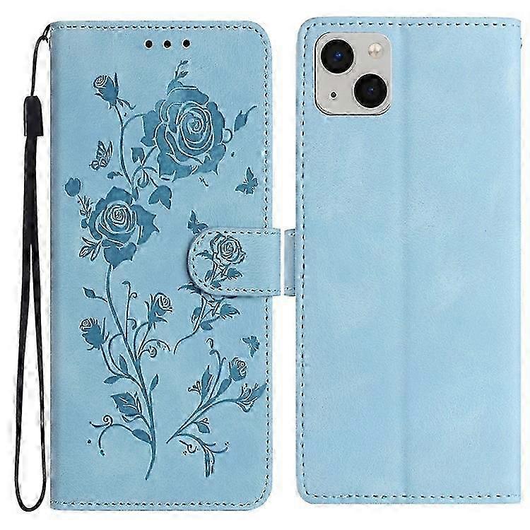For iPhone 15 Wallet Case - Rose Pattern Imprinted Leather Flip Stand Cover