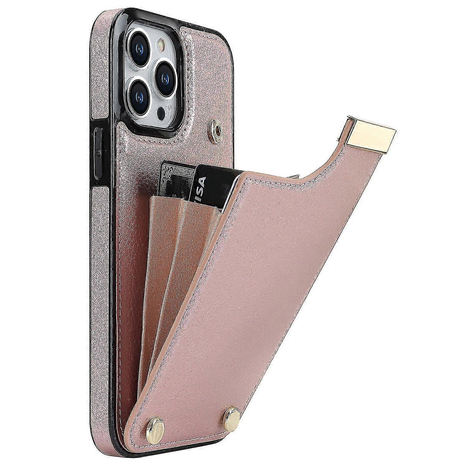 For iPhone 14 Pro Case TPU+PU Leather+Metal Cell Phone Cover with Card Holder
