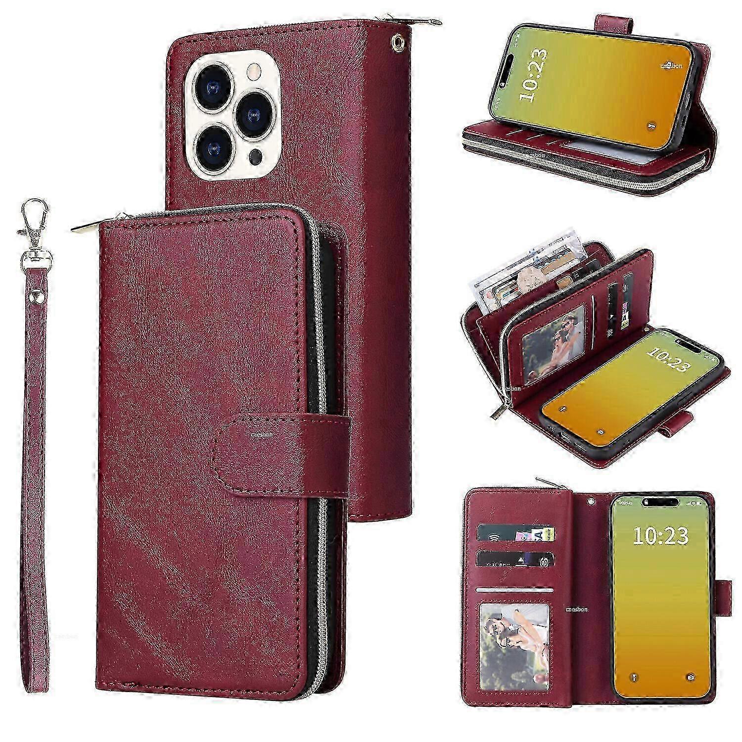 For iPhone 15 Pro Max Case Shockproof Flip Strap Zipper Magnetic Leather Cover with Card Slots Protective Wallet Phone Case