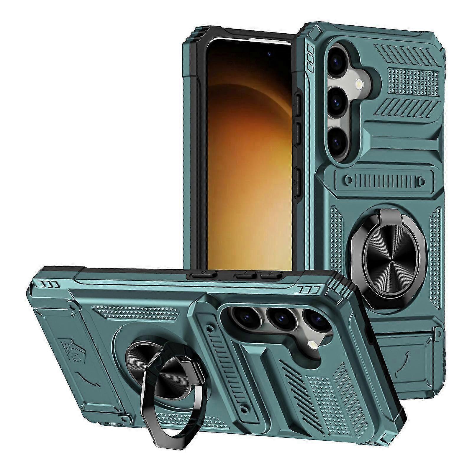 for Samsung Galaxy S24 Ultra Case with Card Holder -Store 2 Cards, +360 Magnetic Rotated Ring Kickstand, Dual Layer Heavy Duty Shockproof Wallet Case