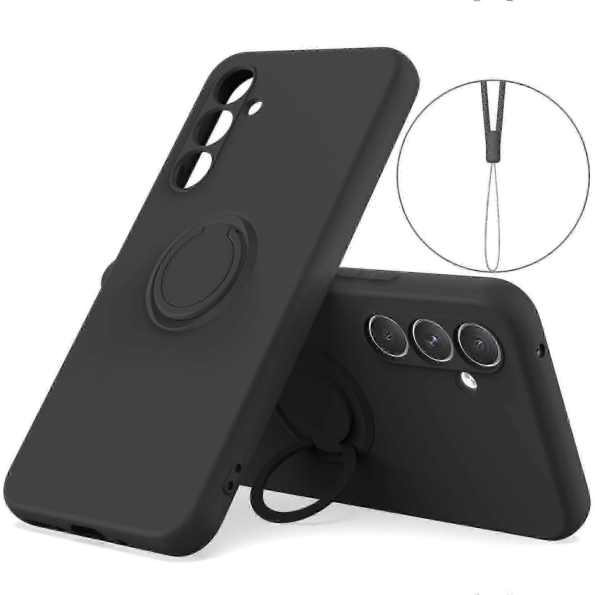 For Samsung Galaxy A55 5G Liquid Silicone Case Ring Kickstand Phone Cover with LanyardP20211224544