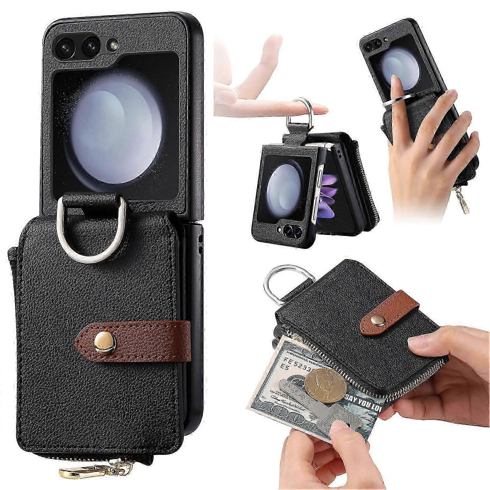 for Samsung Galaxy Z Flip 6 Case Wallet with Ring Card Holder, Leather Shockproof Bumper Protective Case for Galaxy Z Flip 6 5G 2024